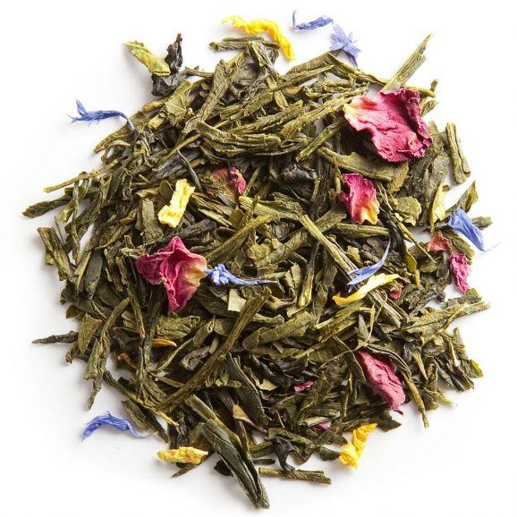Ingrédients : thé vert (Chine) (97%), pétales de fleurs (rose 1%, tournesol, bleuet), arômes (dont lulo, mangue).