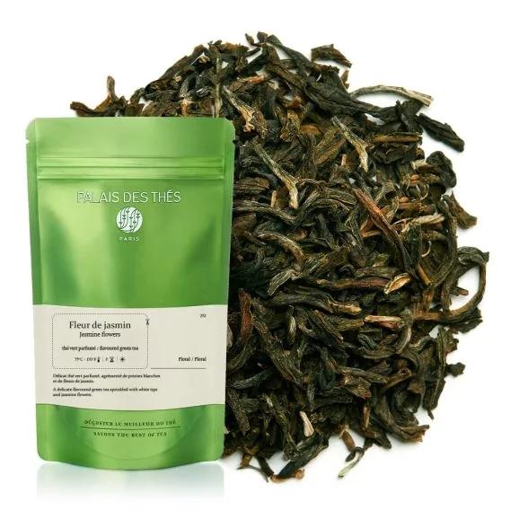 Fleur de Jasmin est un thé vert de Chine parfumé à la fleur du même nom. Ce thé est agrémenté de pointes blanches, à savoir des bourgeons argentés, ainsi que de fleurs de jasmin qui en font un thé vert parfumé des plus délicats.