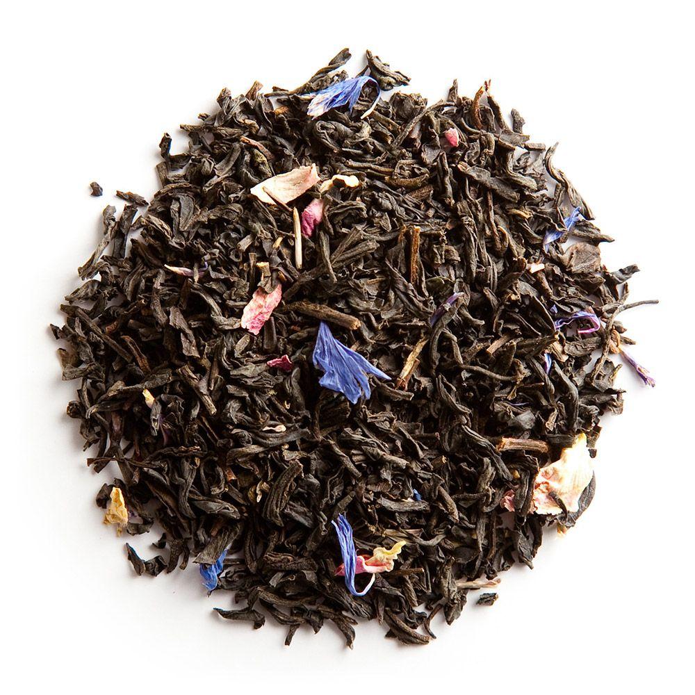 thé noir, arôme de violette, pétales de rose et bleuet.