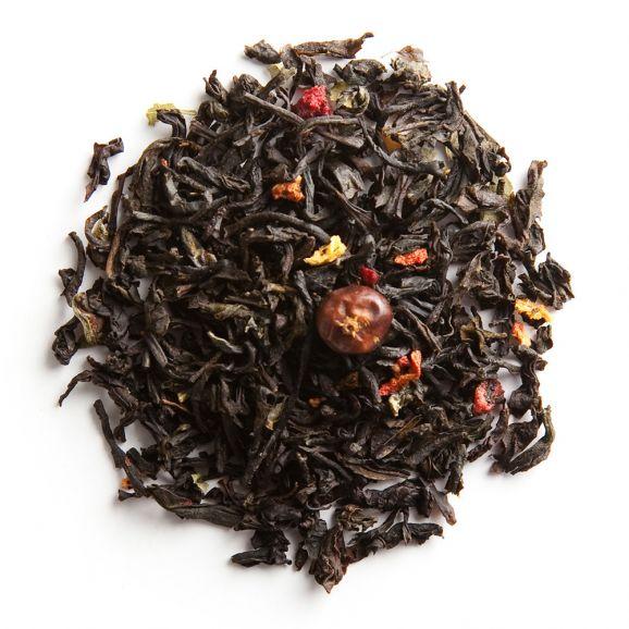 Ingrédients : thé noir (Inde, Chine) (94%), arôme (2%), baies de genièvre, fraise (1%), cassis, feuilles de mûrier.