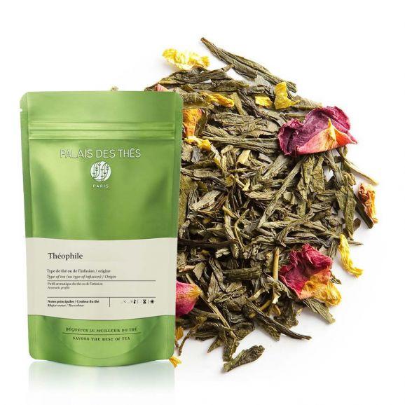 Somptueusement exotique et inspiré de la tradition orientale, Théophile est un thé vert aux accents fruités de lychee et de mangue. Il est rehaussé d’une délicate note de lotus et de rose. Il se déguste aussi bien chaud que glacé.